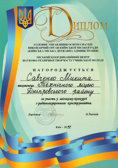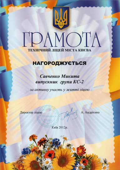 It was an inspiring two years of study at the Technical Lyceum in Kyiv. During this time I gained a lot of experience and was surrounded by creative and interesting people.