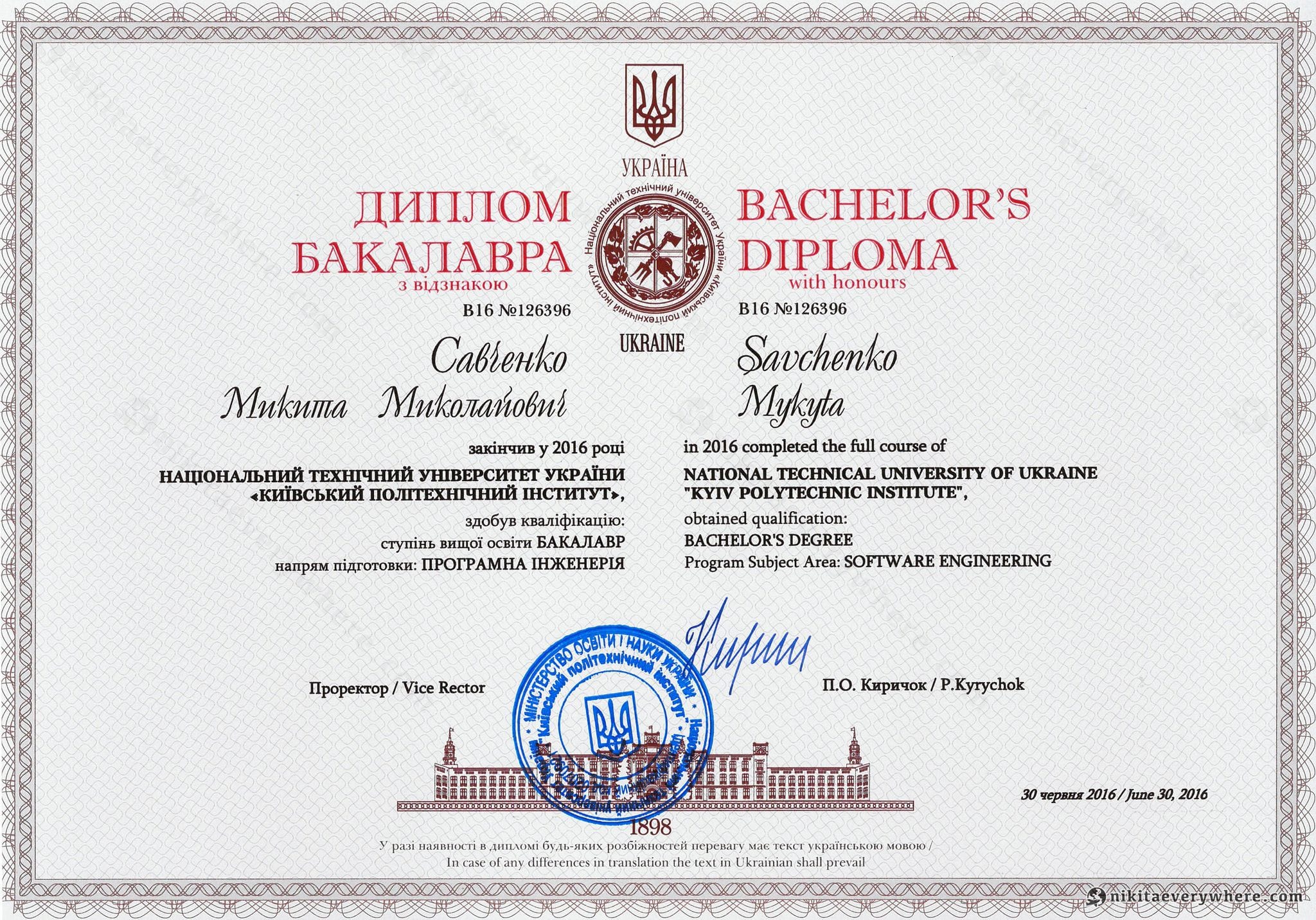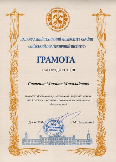 I graduated with honors from the National Technical University of Ukraine "Kyiv Polytechnic Institute" and continued to pursue my master's in the same field of study, software engineering. It was a rewarding four years of study that changed my life significantly.